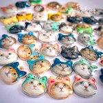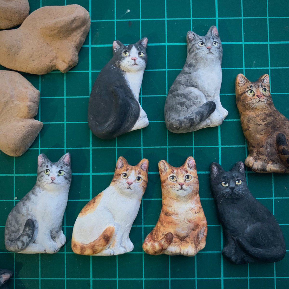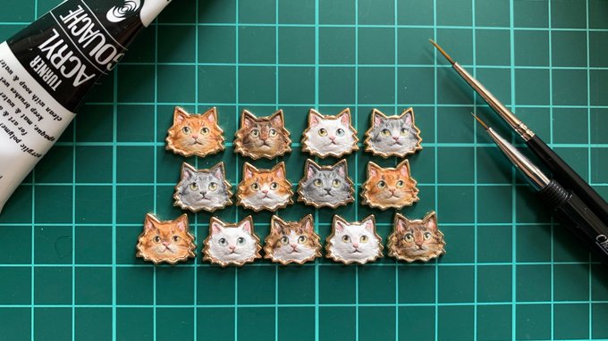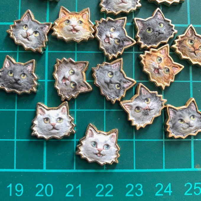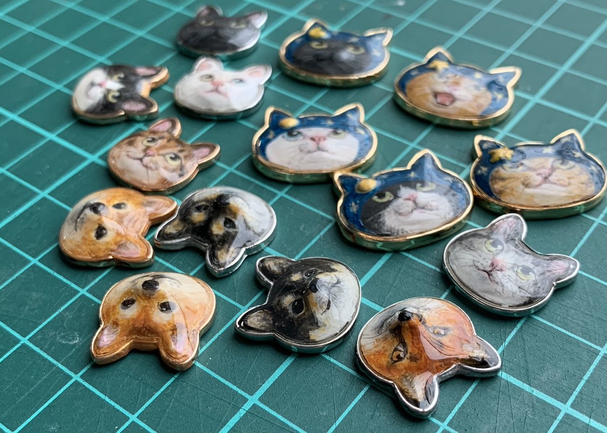 ネコスキー氏と御友人がたを描きました。 仕上げと樹脂コーティングのちストラップにします。 これからシルクハットのチャーム作り、うまくいきますように! #二月のネコスキー natsumehiro-info.blogspot.com/2022/10/nekote…