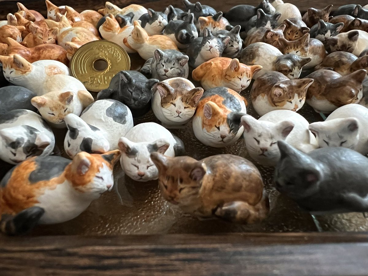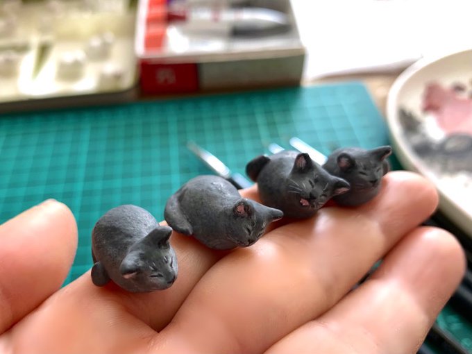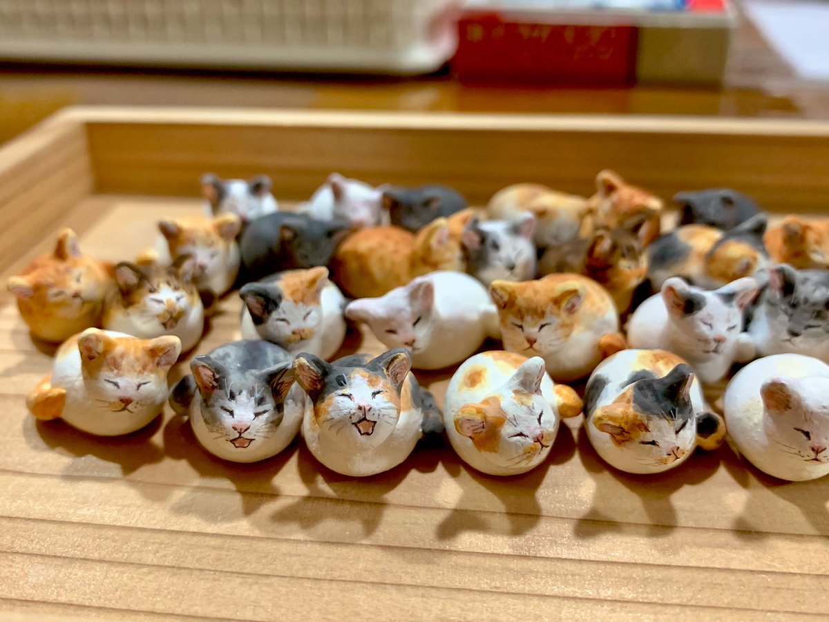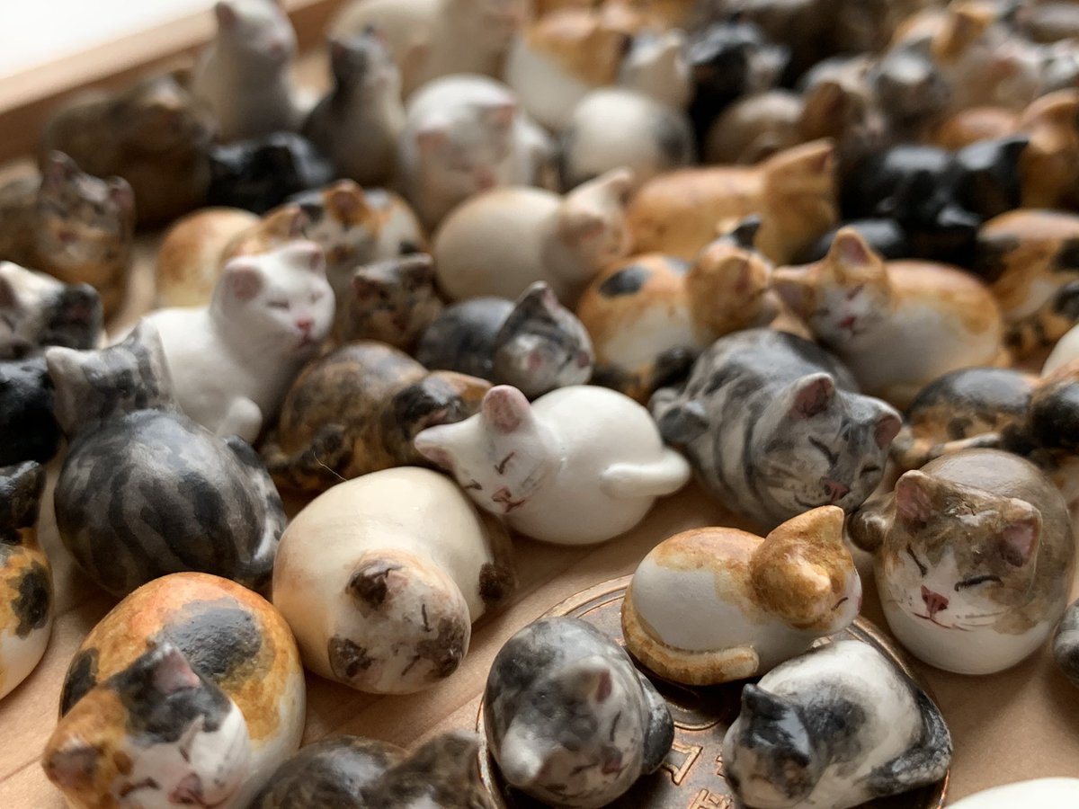 #私の個性はきっと誰かにささる といいな 選ぶのも楽しんでほしい小さなマメネコたちです。 数匹集まると物語がうまれます。 空いた時間で1匹1ぴき作っているので量産出来ていませんが、集めてくださる方を夢見て作っています。 作り貯まればどこかで出品の販売スタイル、素材はオーブン陶土製です🐾