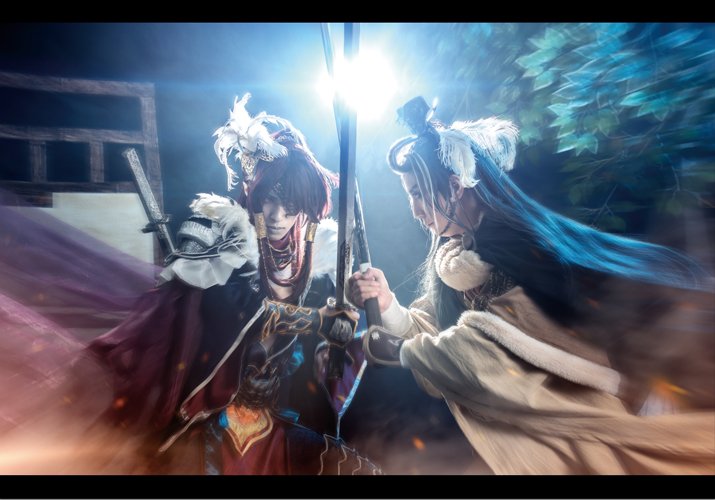 [コス] Thunderbolt Fantasy 東離劍遊紀 殺無生:繭 殤不患:万鯉子 サンファンで作った大道具小道具! 作ったもの:七罪塔背景セット・桂花園背景セット・迴靈笛 画像編集は繭さん 背景合成がいいのかなって思ったけど原作ががちで作ってるから ファンとしてがちで作りたかった! #サンファンアート