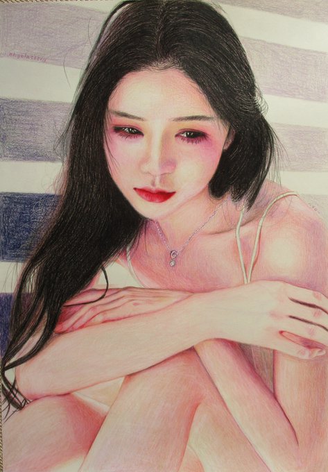 0 5 色鉛筆画です。 #美人画 #色鉛筆画 #似顔絵 #ポートレート #portrait #angelachong 22/10/12 10:20