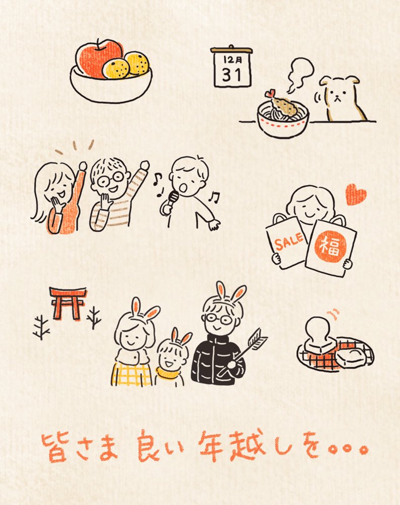 あっという間に大晦日💦 今年8月からTwitterを始め、ほぼ過去作品のアップがメインでした。これからは日々の出来事のイラストなど、お仕事以外でもいろいろ描いていけたらと思ってます。来年もどうぞよろしくお願いいたします☺️ #イラスト #illustration #大晦日