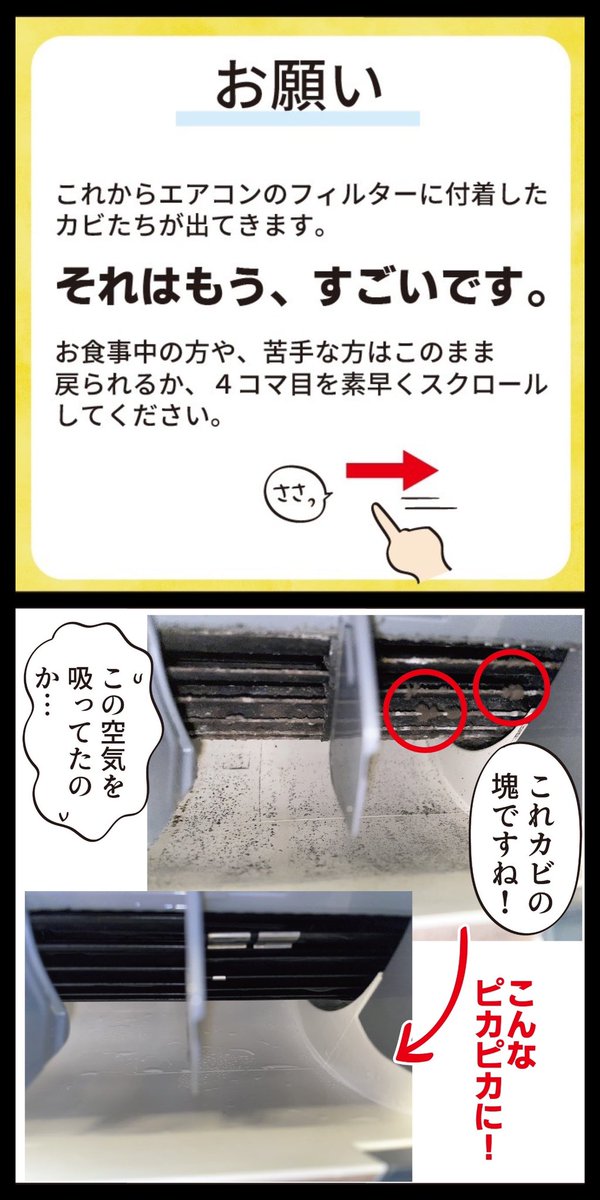 2 6 カビだらけのエアコン② ※カビの塊の写真あるので注意してください🙇♀️ #漫画が読めるハッシュタグ 23/03/13 20:10