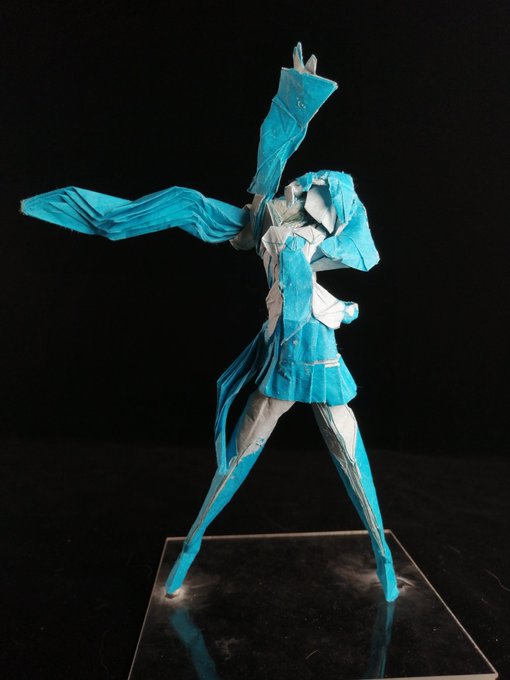 #origamikuwar2022 #初音ミク #初音ミク15th #初音ミク誕生祭2022 #初音ミク生誕祭2022 足先の仕上げとポーズを真面目に考えたマイナーチェンジなのですけど、前評判で初音頭痛ってゅわれた🥹