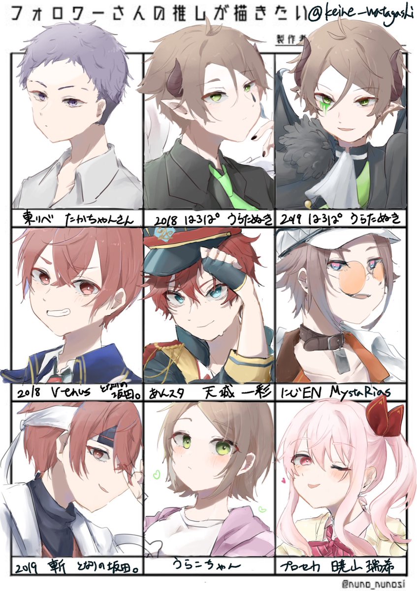 #フォロワーさんの推しが描きたい めっちゃお待たせしました……もう大半の人間は忘れてると思いますがちゃんと描きました 溢れたので2枚になっちゃいました 初めて描く子とかいっぱい描けて楽しかったです😌✨