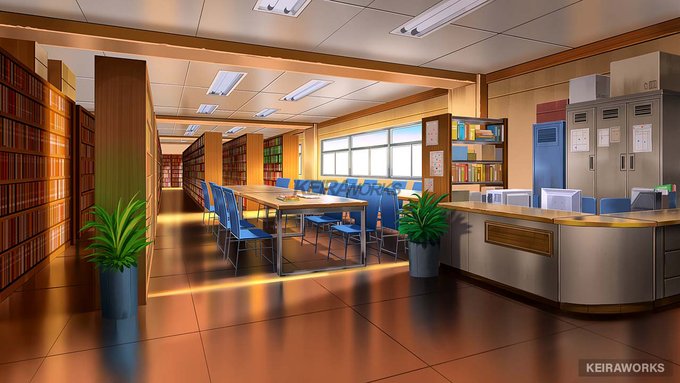 School Library Another piece from last year's project! #background #visualnovel #vtuber #illustration #art #vndev #PortfolioDay #assets