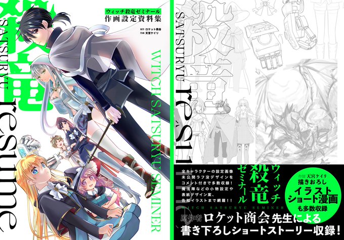 #COMITIA143 新刊は「ウィッチ殺竜ゼミナール」の作画設定資料集です。50Pにおよびキャラの初期設定、各種ラフ、小物や世界観設定など連載用に準備したものに加え、描きおろしイラスト、漫画を掲載しています。 なんとなんと原作者ロケット商会先生【@rocket_shoukai】の書き下ろしSSつき…!(続)