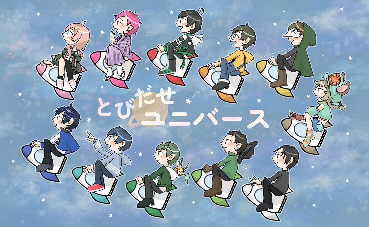 #とびユニ 楽しい配信ありがとうございます! 🚀🪐💫 #よつはがき #紅月絵 #のす絵 #スタボアート #テラゾーン #やんみの絵 #お絵kaki #狂人たろアート #はたアート #影絵と書いてファンアートと読ませたい #ふじみやまで届け