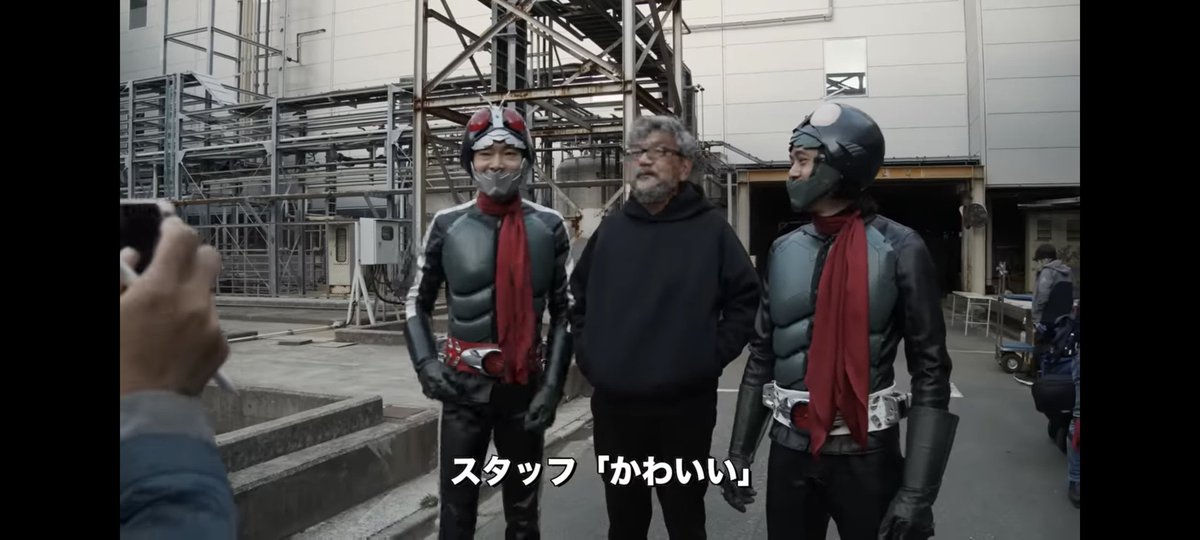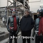 メイキングのマスク開放シーンが 藤岡さんの過去のスナップを彷彿とさせるな てか庵野さん 「俺、ダブルライダーに挟まれてるんだぜ いいだろ」ってドヤ感に溢れてて なんかかわいいぞ #シン・仮面ライダー