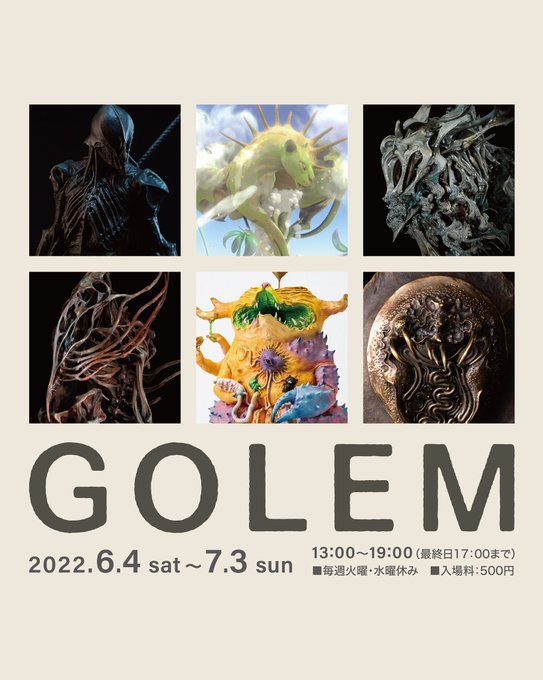 We, Team Golem, are organizing a group exhibition called "GOLEM" in Japan. This exhibition consists of 6 artists, and we would like to share the diversity and fun of three-dimensional art with everyone. @i_heishiro @aki_shi_ @tdaiki1216 @hiyocoman01 @YuukiM0rita