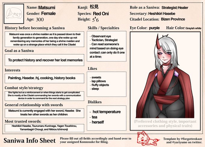 6 15 here’s my saniwa, matsumi’s saniwa info! you can find the template on their twitter twitter.com/khnvinien/stat… #ファンアート #イラスト #刀剣乱舞 #toukenranbu 22/05/31 21:18