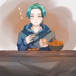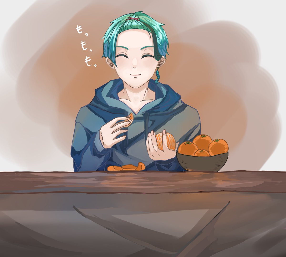 63日目 そろそろ新しいヘッダーにしたいからコタツに入ってるオクタを描く! まずはフロイド先輩! このヘアバンドは弟が実際に持ってるやつです #1日1絵 #100日チャレンジ #フロイド・リーチ #twstファンアート