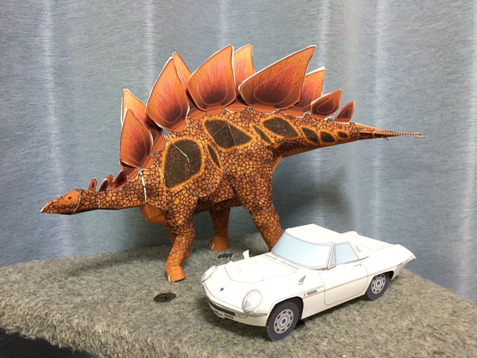 厚紙用紙に印刷してペーパークラフト。 普通紙に印刷して作るのはやはり無理がありました(笑) スティックのりか、クラフトのりか、どっちが良いのかまだ分かりません。 #キャノン #マツダ #コクヨ #ステゴサウルス #コスモスポーツ #厚紙用紙 #ペーパークラフト