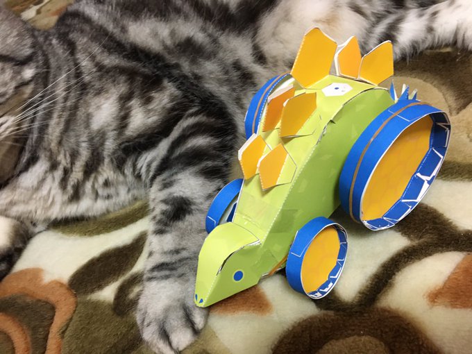 0 3 5歳の娘と共同制作したペーパークラフトの、プルバックで走るステゴサウルス。 銀八に背びれを取られました。 #ペーパークラフト #キャノン 20/05/03 09:38