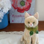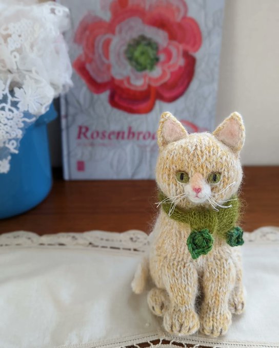 『きょうのにゃんこ』 お行儀の良いおすわりにゃんこ わりと大きめサイズです🐈 #あみぐるみ #amigurumi #bichesetbuches #ねこのあみぐるみ #にゃんこと毛糸だま #毛糸遊び #毛糸だま #おすわりにゃんこ #木の葉のマフラー #キリッ