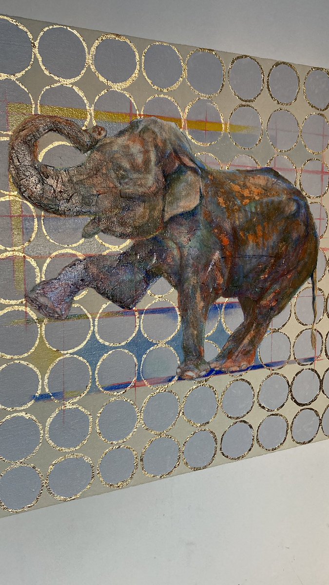 進め始めると、スルスルいく。 もう少しで、完成です。 画像は、一部です。 #art #artwork #contemporaryart #oilpainting #mixedmedia #elephant #ArtistOnTwitter #絵描きさんと繋がりたい