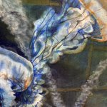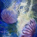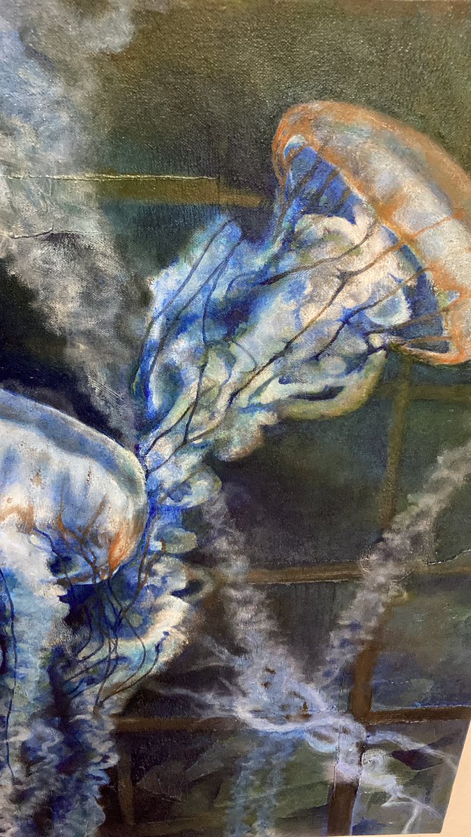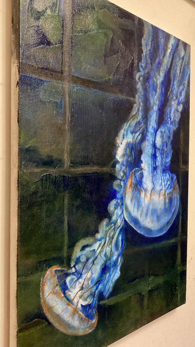 Untitled 2022 18”x21” 完成です。 光の加減&角度で表情が変化するように、ふでを運びました。#art #artwork #oilpainting #jellyfish #contemporaryart #絵画 #油絵 #クラゲ #絵描きさんと繋がりたい