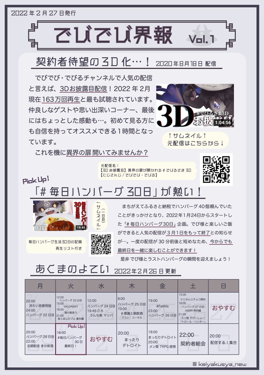 42 139 でびでび界報 Vol.1を発行しました! #でびるさまにささげるえ 22/02/27 09:01