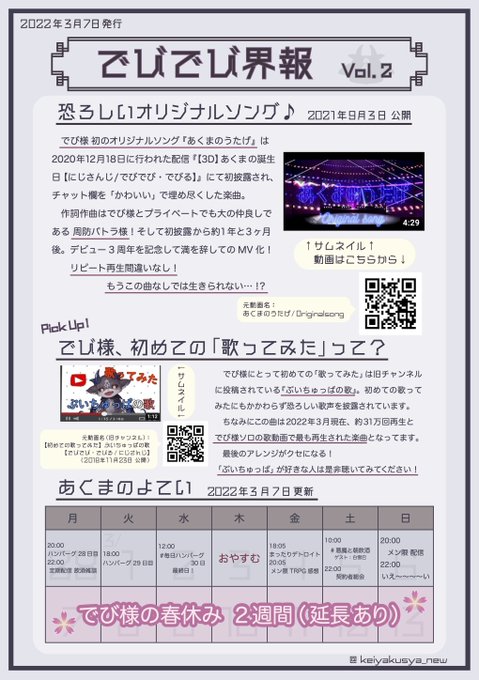 でびでび界報 Vol.2を発行しました! 素敵な春休みをお過ごしください! #でびるさまにささげるえ