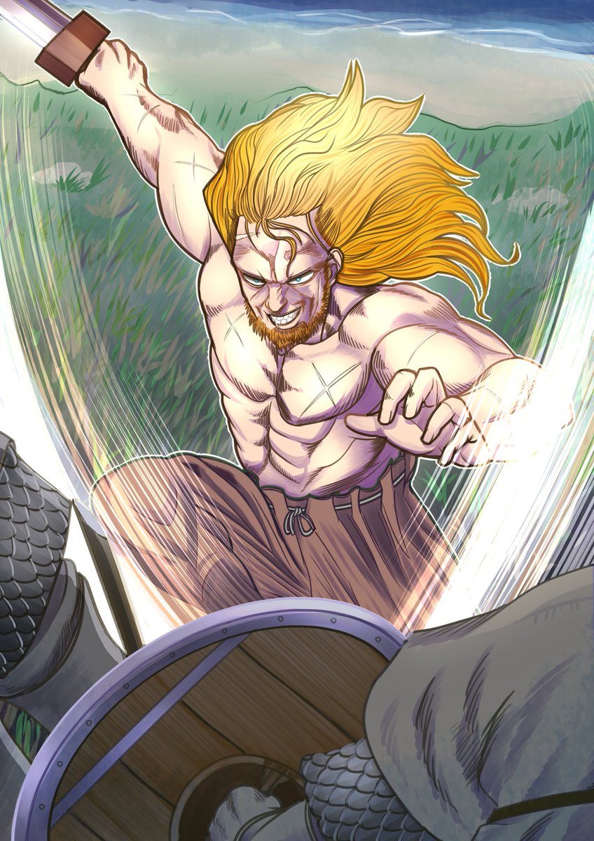 #VINLAND_FANART2 今回誰描くかかなり悩んだんですが、トールギルにしましたー 僕も実際痛いのは嫌だし、戦争はできたらこの世から消滅してほしいですが、でもそれはそれとして剣というものはいつだって無条件にカッコいいし、古の英雄たちの逸話にはいつも心をときめかせてしまいます。 冥界からよ!