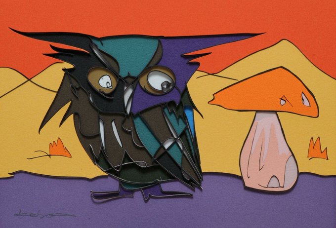2 39 「きのこの山」#彫紙アート 作品です。制作当時の情熱を思い起こします。 皆さんが良い一日になりますように。 #フクロウ 22/09/13 03:18