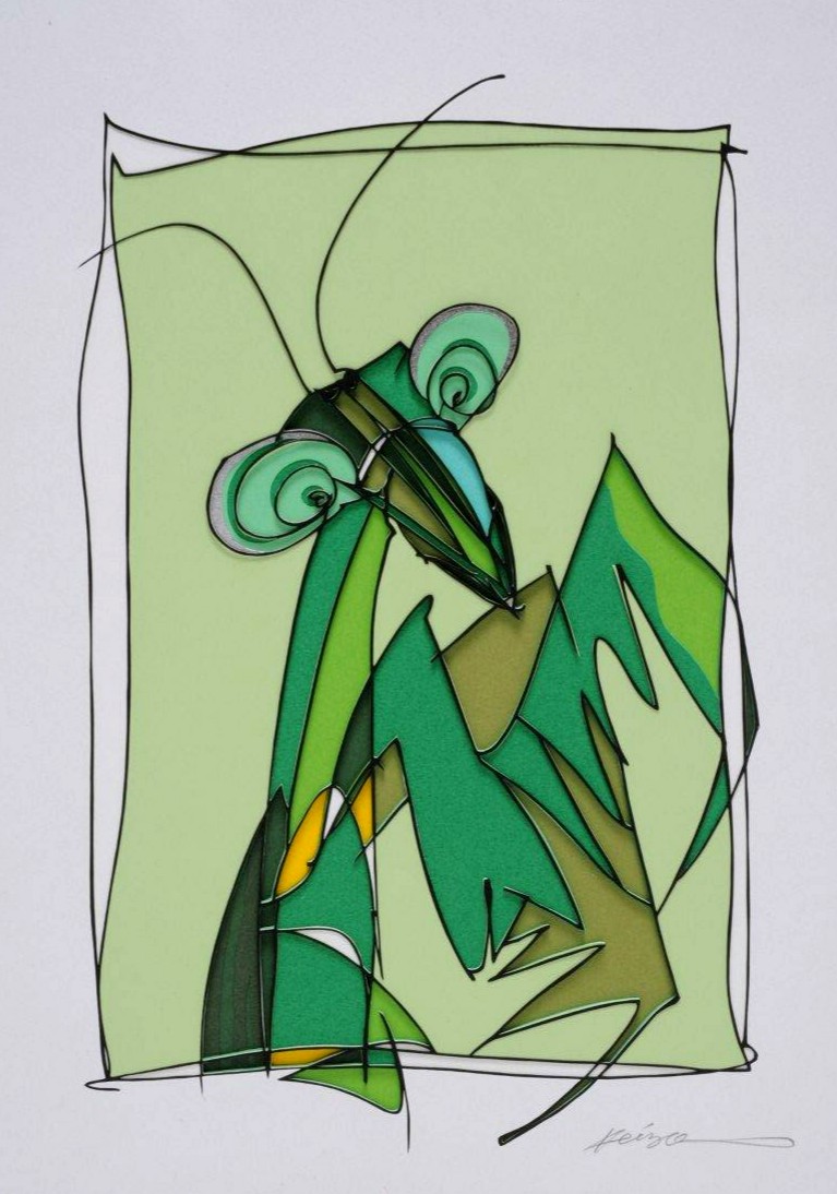 庭に出たら、アジサイの葉に大きなメスの #カマキリ がいました。 雄は命がけでメスに近づきプロポーズしますが、無事を祈ります。かなり大きいのでもう既に?・・・・。 僕がカマキリに生まれてこなかったことに感謝です☺️ #彫紙アート