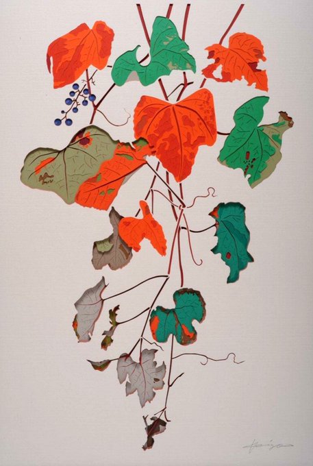 エビヅル #彫紙アート 作品です。 とても味わい深い植物です。