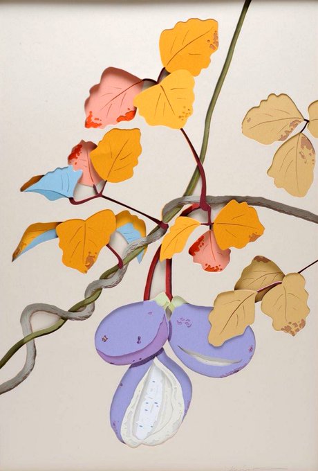 スーパーにアケビの実がならび始めましたね。 #彫紙アート 作品です。 今日も暑い一日でした。 良い夜を❤️