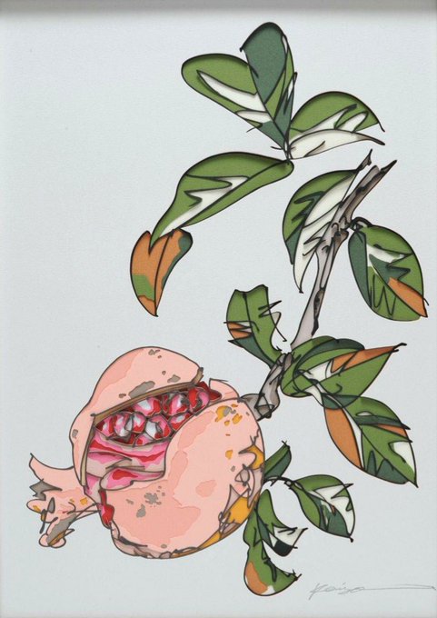 ザクロが美しい季節ですね。 #彫紙アート 作品です。
