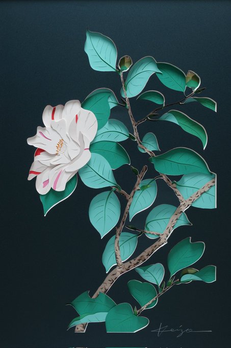 6 57 彫紙アートの初期作品です。2年間くらいは花ばかり制作していました。サイズ:B2 今日、明日は雪の警戒地域がありますね。ご注意を。 #彫紙アート #ツバキ 23/01/23 07:28