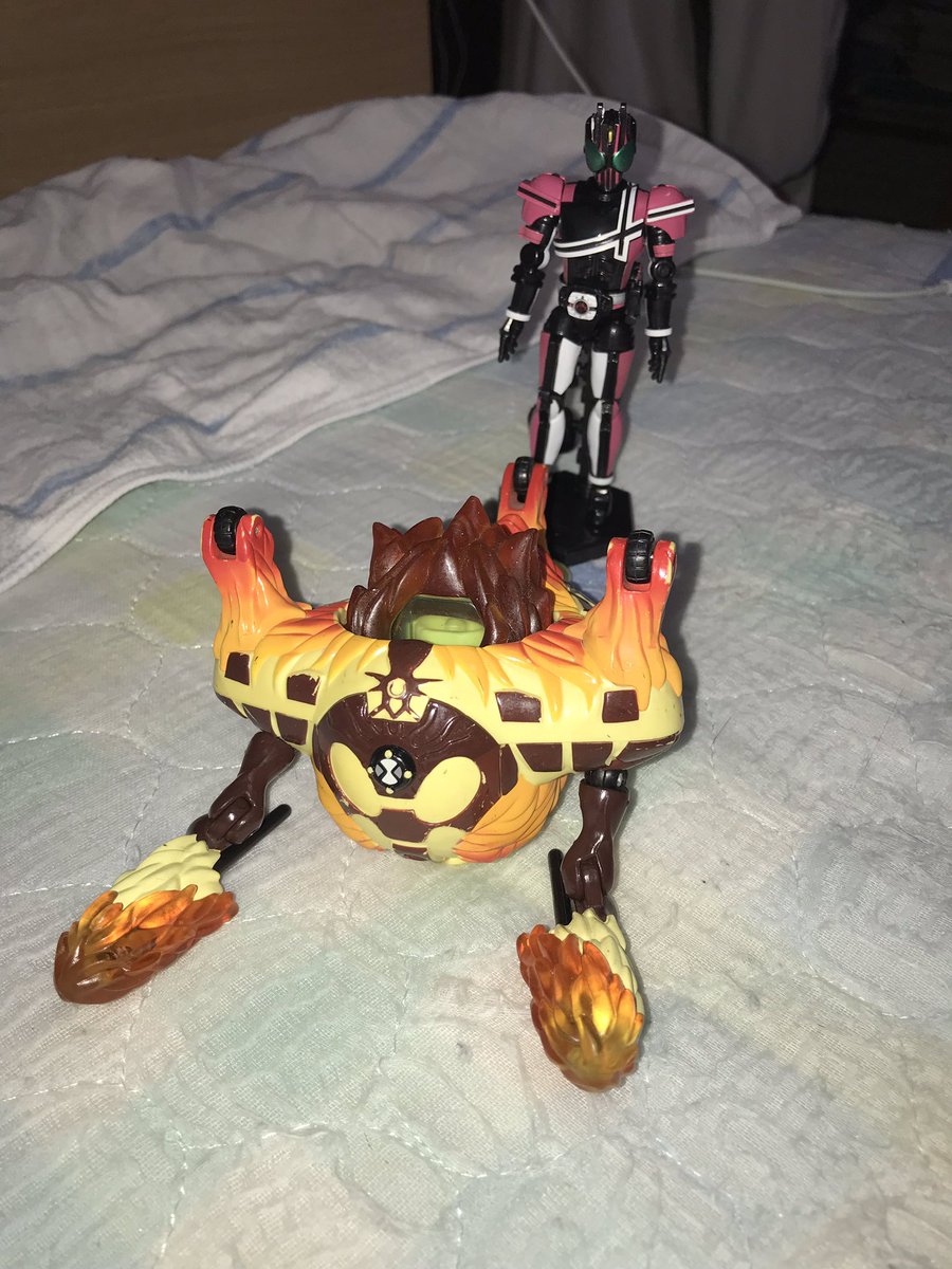 #夜のフィギュア撮影会 1/27 お題 テーマ『電』 我が家の電気系エイリアンヒーローたち。 ブレインストームとショックロック。 電気のエフェクトっぽくなってますかね? #ben10 #ベン10