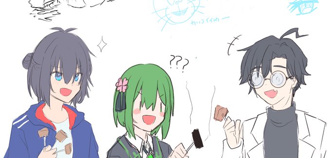 0 4 友達がさぁ〜〜!楽しいコラボイラスト描いてくれたのよ〜〜🌸🌹🌼 (1番左端がうちの子) 焼肉だと思ったら カルメ焼きパーティらしい #イラスト 22/06/29 08:07