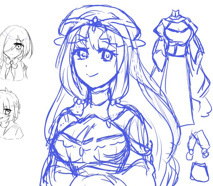 1 6 昨日描いた④ マリディ姫 衣装が決まりません。 #イラスト #落書き #オリジナル 22/07/17 09:59