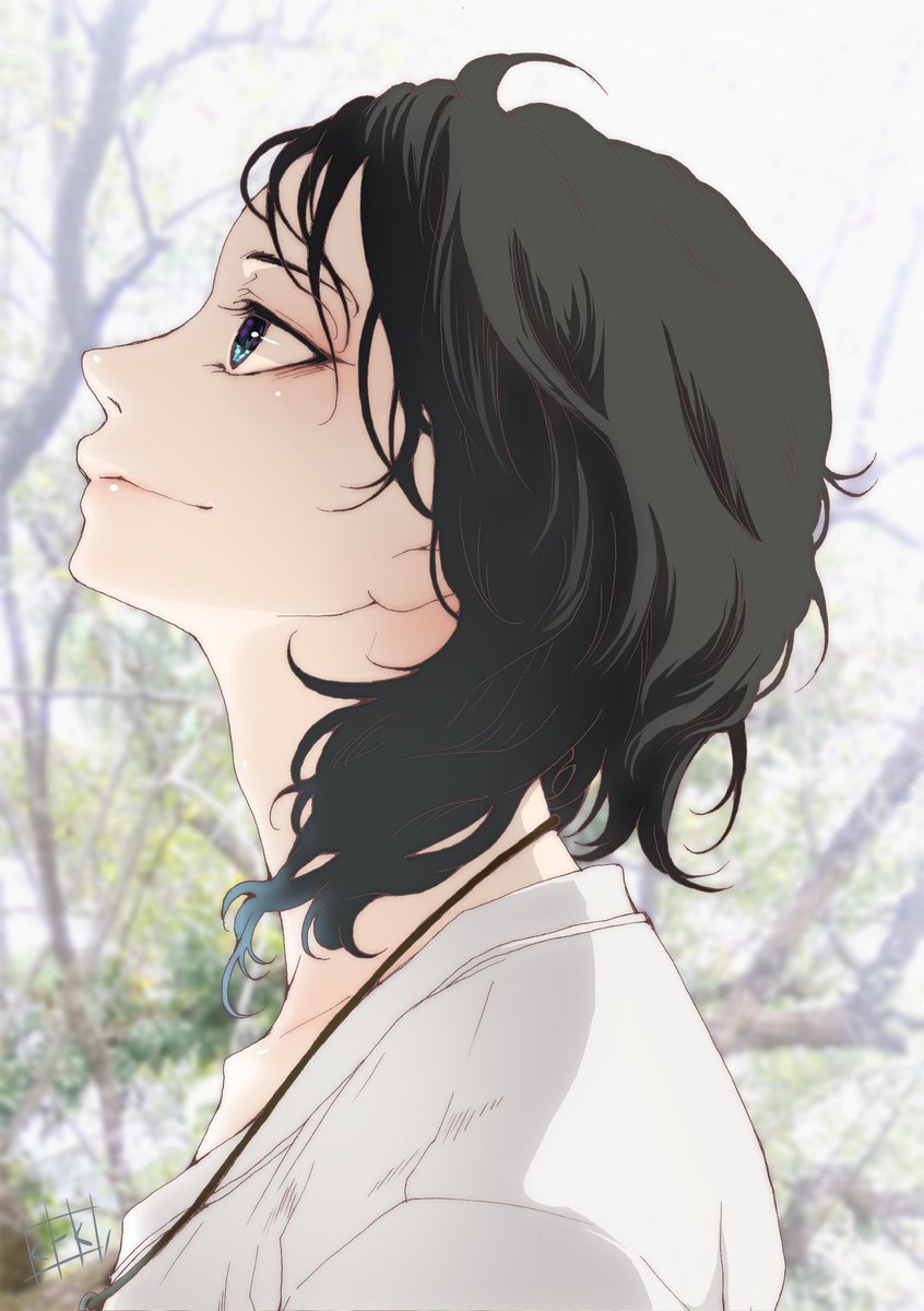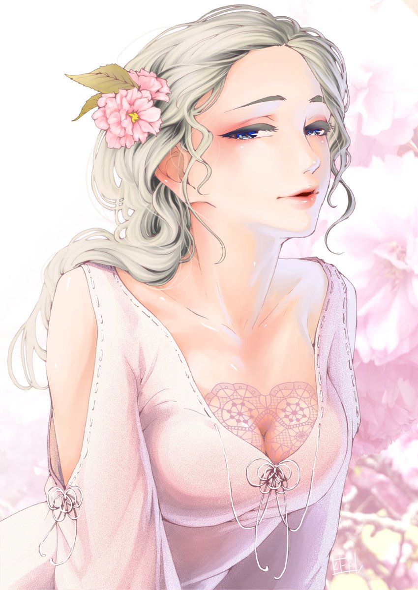 #ケキの表 REIさん(@rain0806 )のお写真を描かせていただいた表です。 桜に攫われそうな儚い表がなんとも美しいお写真でした…