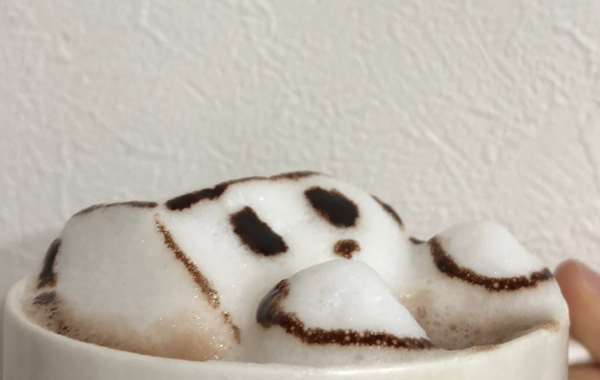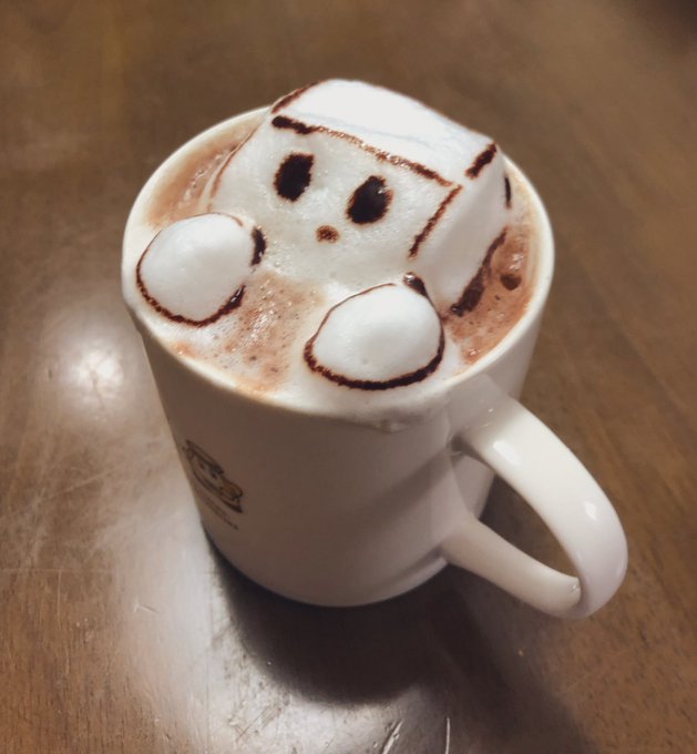 #絵くしょん 正直絵なのか微妙ですが一応ラテ「アート」なので 初めてラテアートに挑戦してみました 二枚目は横からの見た目