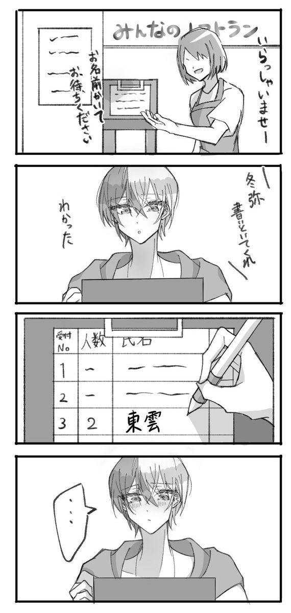 ファミレスの待ち表に名前書いてむず痒くなるとや(彰冬)