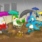 「水たまり」 #ポケモンレインブーツフェスティバル #ジメレオン #ラビフット #テールナー #絵描きさんと繋がりたい #ポケモン絵描きさんと繋がりたい