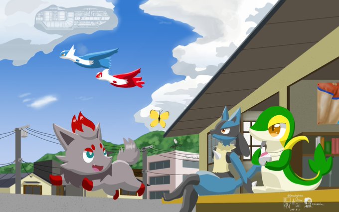 16 62 It's summer! #ゾロア #ルカリオ #ツタージャ #ラティ兄妹 #絵描きさんと繋がりたい #ポケモン絵描きさんと繋がりたい 21/08/11 21:17
