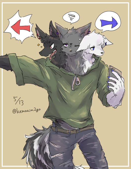 12 75 #人外版深夜の真剣お絵描き60分一本勝負 お題「ケルベロス」より! ケルベロス獣人さん(相反する性質も入れたかったけど頭3つに割り振るの難しかった…) 22/05/14 00:31