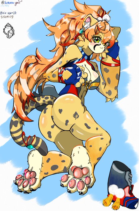 #不機嫌なラクーンさん #ケモノ #UnhappyRaccoon #furry #furryart #feetfethish #絵師さんフォロバ100 紅蓮華コスのギターナちゃん🐯 Gurenge costume Kitana🐯