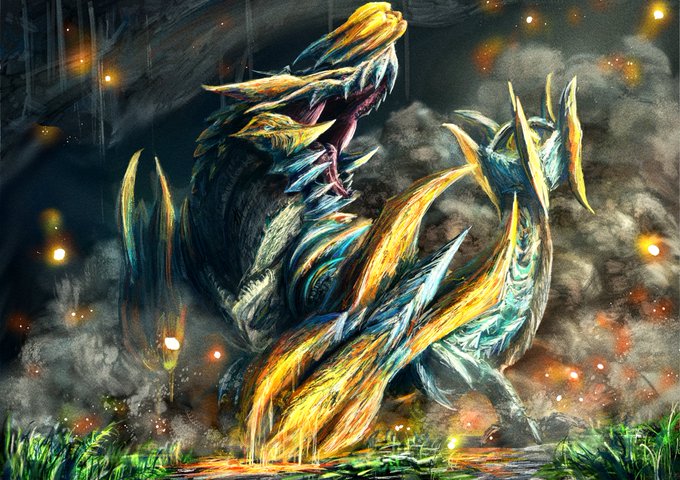 沈め掻臥せ戦禍の沼に 【巨戟龍 ゴグマジオス】 描き込みめっちゃ頑張ったので伸びてほしい! #MH4G #モンハン #絵描きさんと繋がりたい #イラスト #イラスト好きな人と繋がりたい