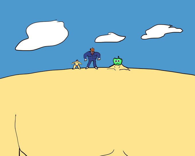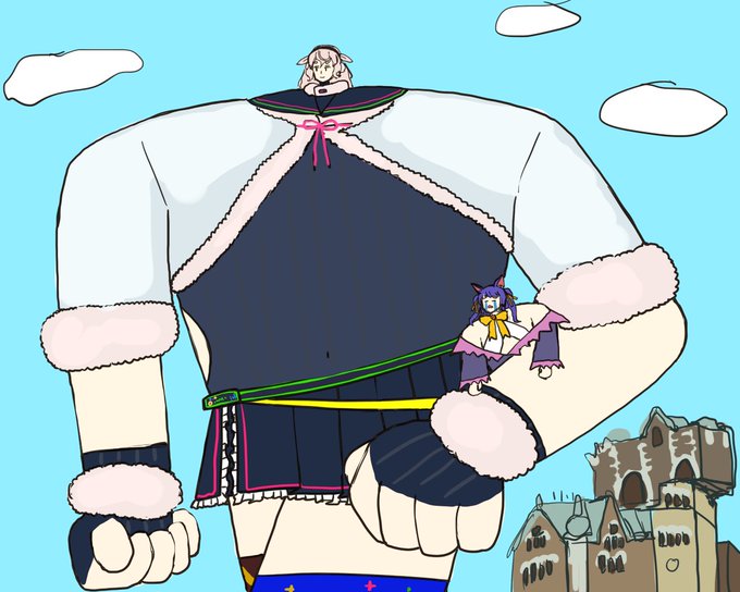 タワーオブテラーに挑むも惨敗してしまった魔王候補を小脇に抱え保護する肩幅50メートル級のもこ田めめめ #めめアート