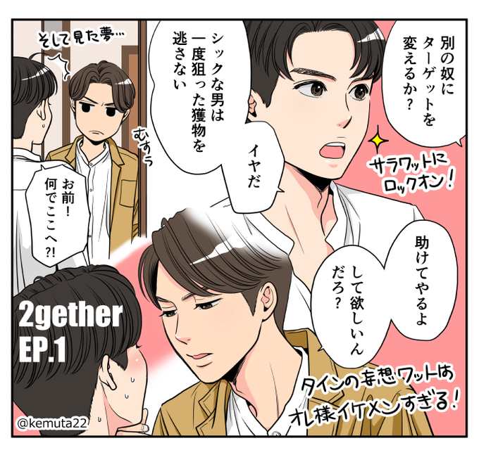 【2getherリピ中🥰】 別の奴に変えるか?ってフォンに聞かれてキッパリ断る時点でもうね…🤭❤そして夢の中のサラワットはクールで強引!13話だと優しくて気遣ってくれるしタインの理想が詰まってるのかな✨ #2gether #サラタイ #SarawatTine #2gether創作