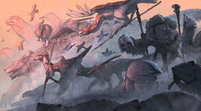 #いつか超つよつよ作家になるので今のうちに推しませんか 今まで出した4作品の表紙です。感慨深いですね… 動物が文明を持ったら?をテーマに色々書いてます! #動物文明史記 ←過去絵はこちらで