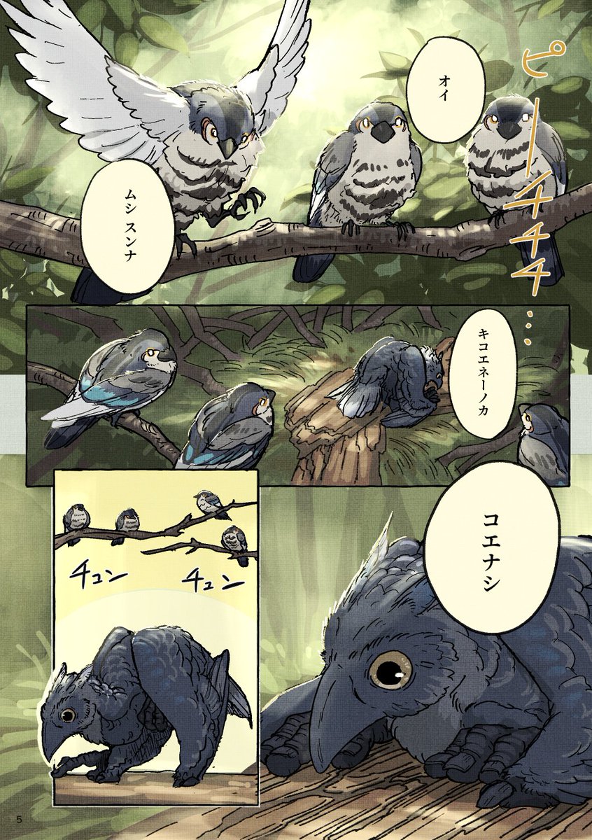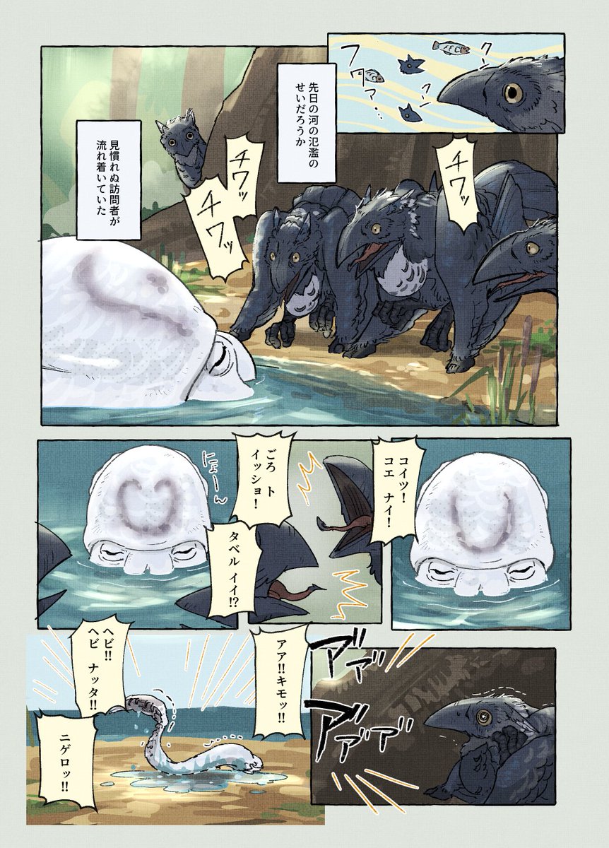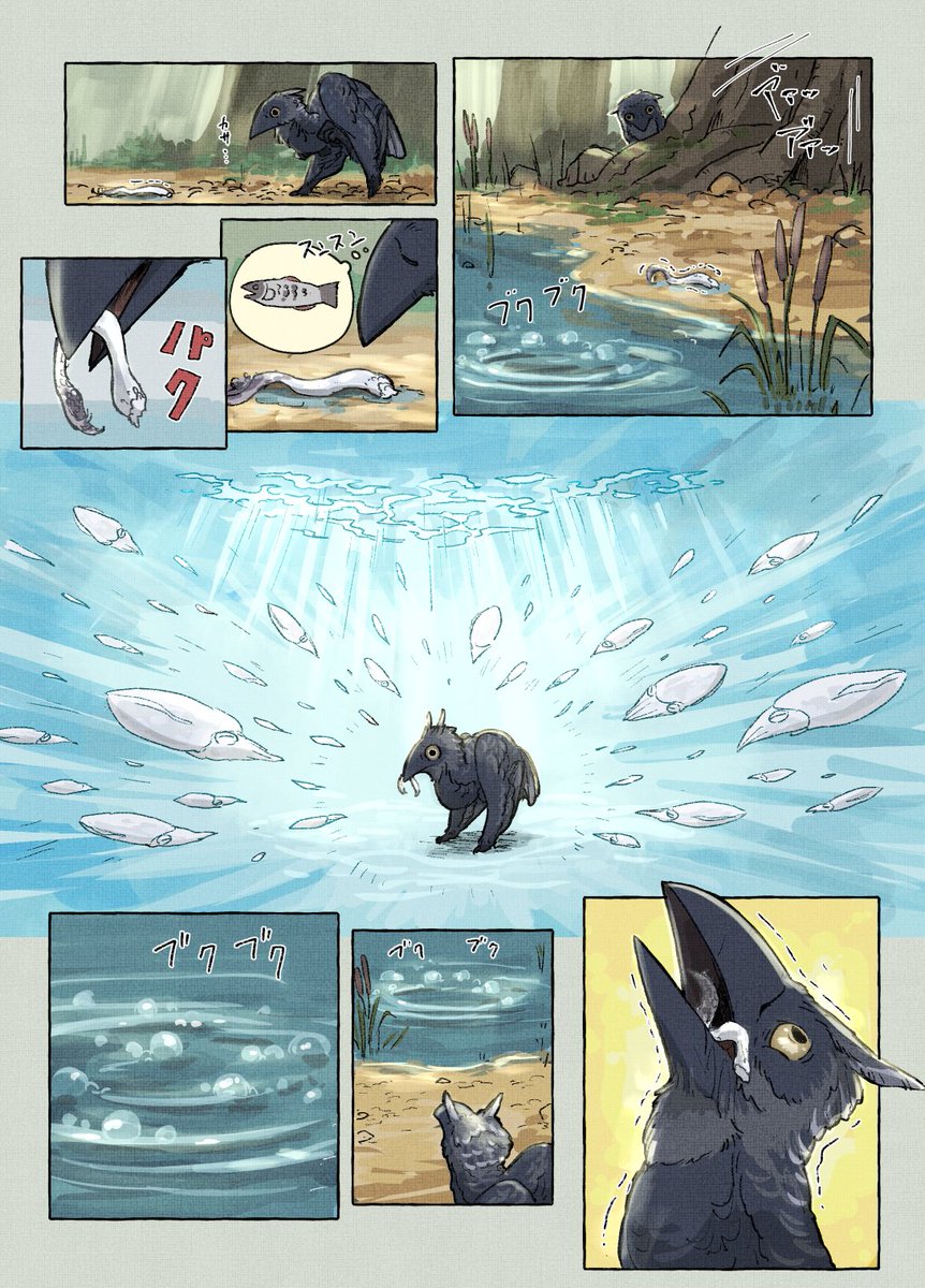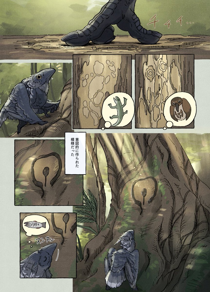 コミティア144に持っていく予定の新刊冒頭のサンプルです(まだ脱稿してません…) 【鳥の文明史 -こえなしカラスとおしゃべりイカ-】 (1/2) #COMITIA144 #漫画が読めるハッシュタグ #動物文明史記