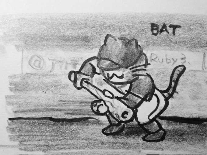 バントってあんまカッコいいと思ってなかったんですが…投手捕手両方に取りにくい位置に弾いて、走者を進めるって、実はスゴイことなのでは…。 #inktober #inktober2022 #bat