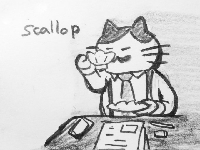 0 1 服とかお皿とかで、縁が扇形で続いてるヤツ、スカロップというらしいのですが…それがホタテだと知って、ほえーってなりました…。 #inktober #inktober2022 #scallop 22/10/04 08:27
