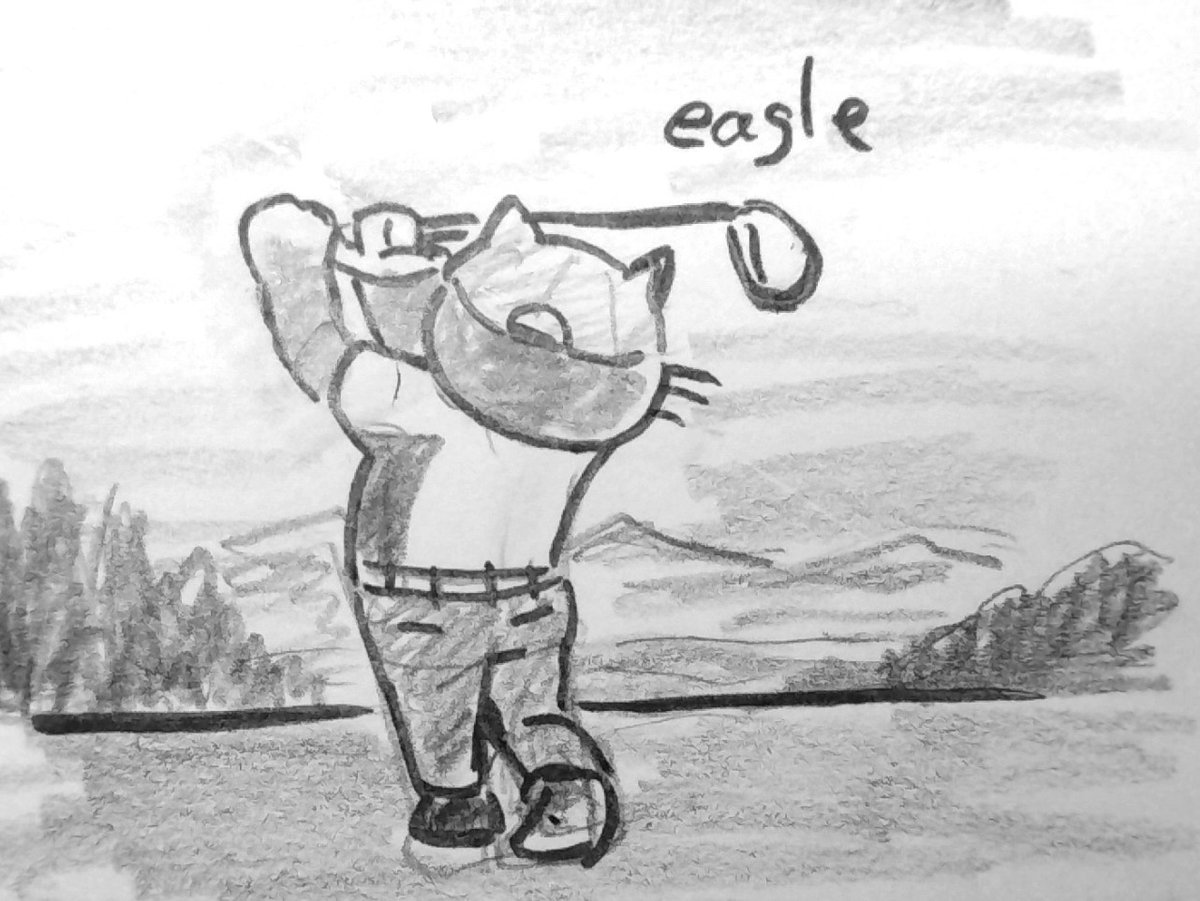 ゴルフのイーグル、スコアの基準のパーより2打少ないんだけど…。 パーが5打だとしたら40%も少ないので、よく考えると半端ないな…。 #inktober #inktober2022 #eagle