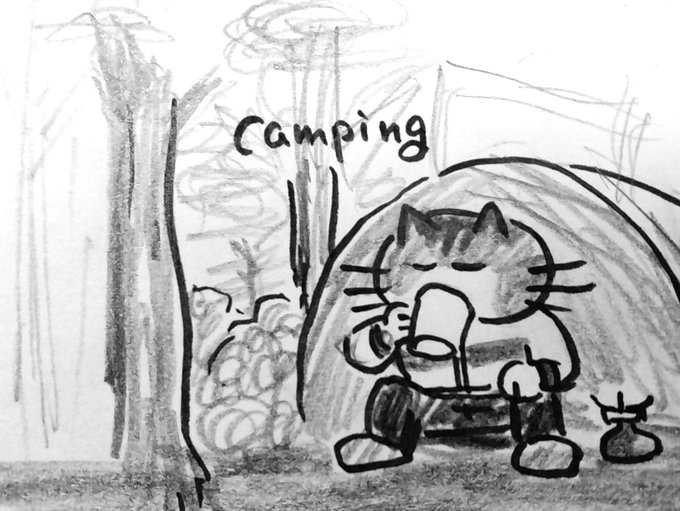 ちょっと肌寒い早朝、鳥の声を聞きながら、熱いコーヒーをすすりたいような…。 #inktober #inktober2022 #camping