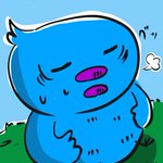 「お腹いっぱいの青い鳥」 食べすぎー。 これじゃ飛べない(・ω・`) でも、お腹いっぱい食べれるって。 幸せよね。 #イラスト #青い鳥 #お腹いっぱい