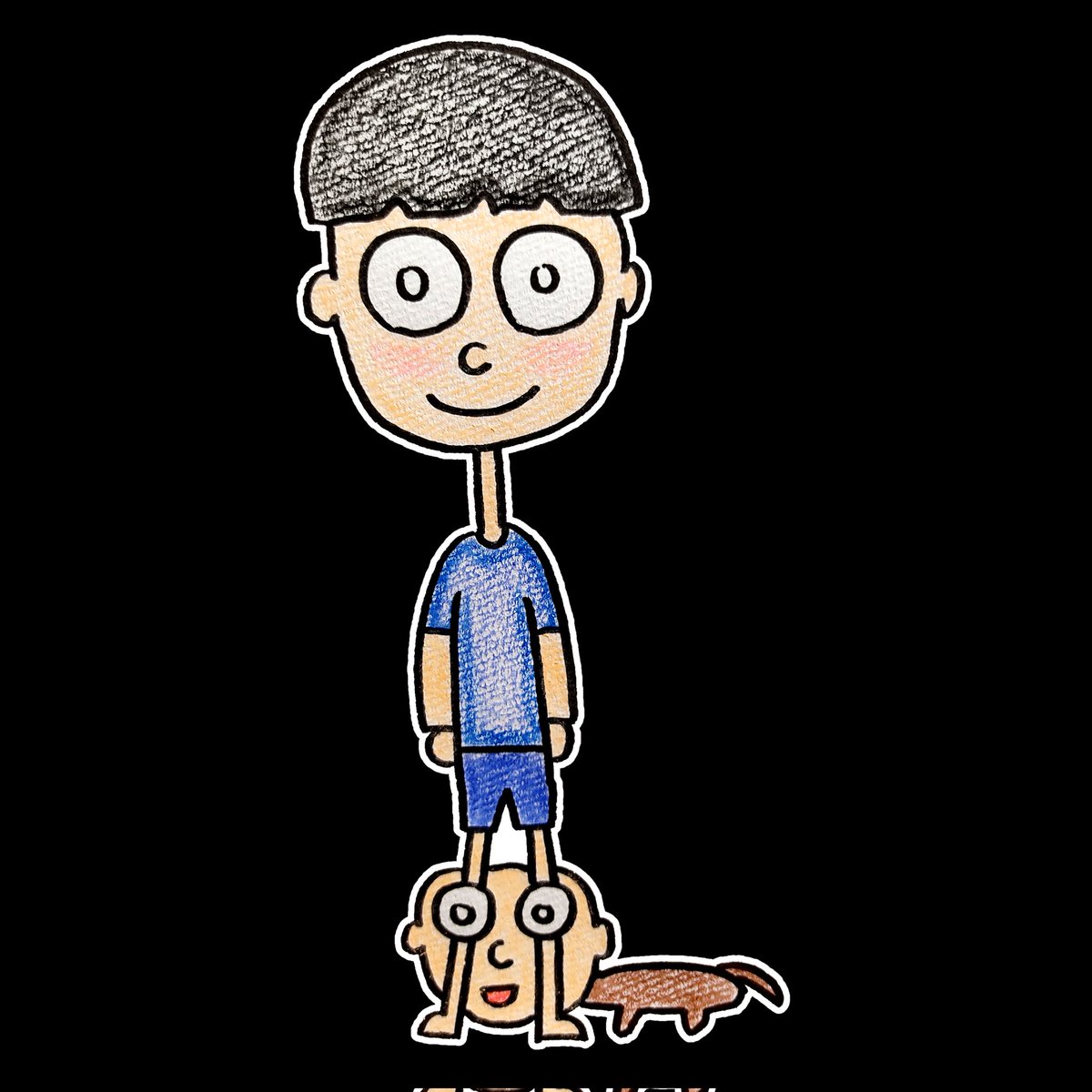 まもるくん ヒザのところに顔がある #イラスト #illustration #クーピー